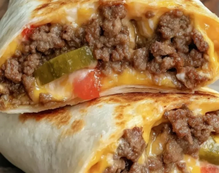 - Assemble the wraps: Lay out tortillas. Place a slice of cheese in the center, then spoon beef mixture on top. Add optional toppings like pickles or burger sauce.