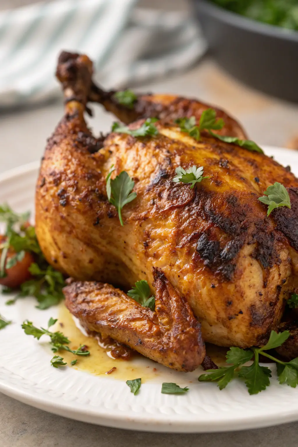 To make this dish, you’ll need a few essential tools: – Air Fryer: The key to crispy, juicy chicken without the extra oil. An air fryer circulates hot air around the food, creating a crispy layer similar to deep-frying but with a fraction of the oil. It’s perfect for those who want to enjoy fried foods with less guilt. – Mixing Bowl: For combining the marinade ingredients. A large bowl allows you to thoroughly coat the chicken with the spice mixture, ensuring even coverage for consistent flavor. – Tongs: To easily flip the chicken. Tongs provide a firm grip, making it simple to turn the chicken without piercing it, which helps retain juices and maintain moisture. – Meat Thermometer: Ensures your chicken is perfectly cooked. A meat thermometer is essential for food safety and guarantees your chicken is cooked to the right temperature, avoiding any risk of undercooking.