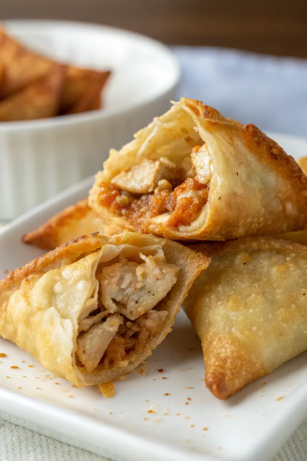 Each ingredient in this recipe plays a critical role in creating the perfect balance of flavor and texture: – Cream Cheese: This gives the filling its creamy, rich texture, making each bite melt in your mouth. It’s also a great base for holding all the other ingredients together. Consider using reduced-fat cream cheese for a lighter version. For those who are lactose intolerant, dairy-free cream cheese alternatives can work just as well. – Cooked Chicken: Using leftover chicken not only adds protein but also reduces waste, making this dish both practical and delicious. Rotisserie chicken works wonderfully here for added convenience. For a different flavor profile, try using smoked chicken or even turkey. – Green Onions: They add a fresh, mild onion flavor that brightens up the dish. For a sharper flavor, you could substitute with chives or omit if you prefer a milder taste. Scallions are another great alternative, providing a slightly different but equally delightful taste. – Worcestershire Sauce: This secret ingredient brings a savory depth of flavor that elevates the filling to new heights. Its umami quality complements the creaminess of the cheese and the tenderness of the chicken. Soy sauce or tamari can be used as a substitute for a different but equally rich flavor. – Garlic and Onion Powder: These spices add a subtle, savory warmth that enhances the overall taste profile. Feel free to adjust the quantities based on your preference for a stronger or milder flavor. Fresh minced garlic or onions can also be used for a more robust aroma. – Wonton Wrappers: The crispy outer shell that holds everything together, providing a satisfying crunch. If you can’t find wonton wrappers, phyllo pastry sheets can be a good substitute. Spring roll wrappers are another alternative, offering a different texture and taste.
