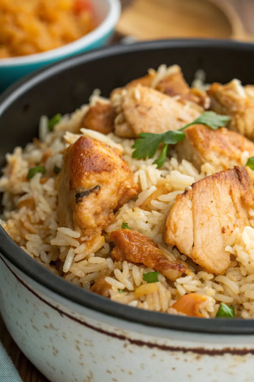 A quick and delicious meal that combines tender chicken and flavorful rice, all cooked in an air fryer.