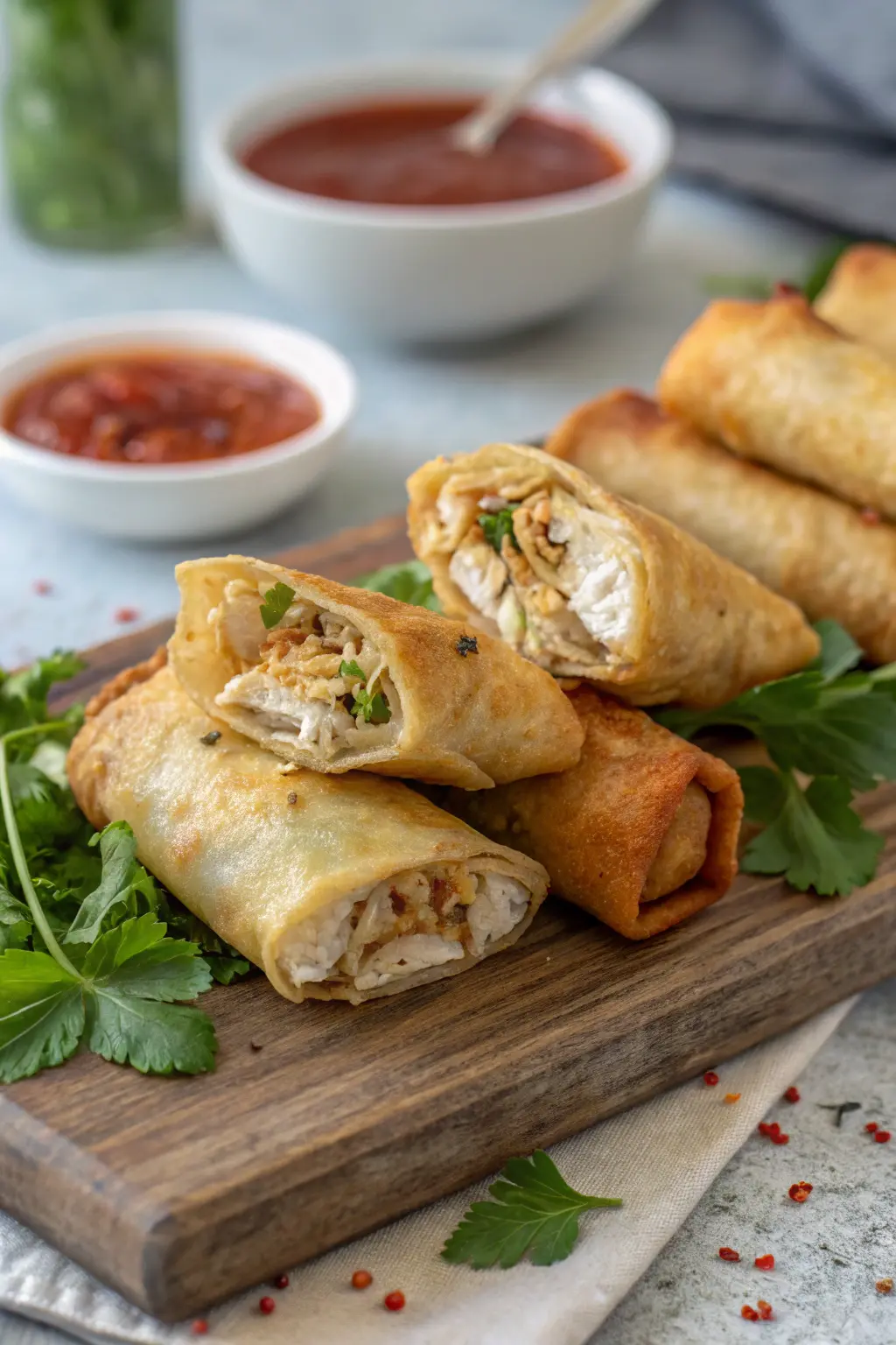 These Air Fryer Chicken Spring Rolls pair beautifully with a variety of sides and dips. For a complete meal, consider serving them with: