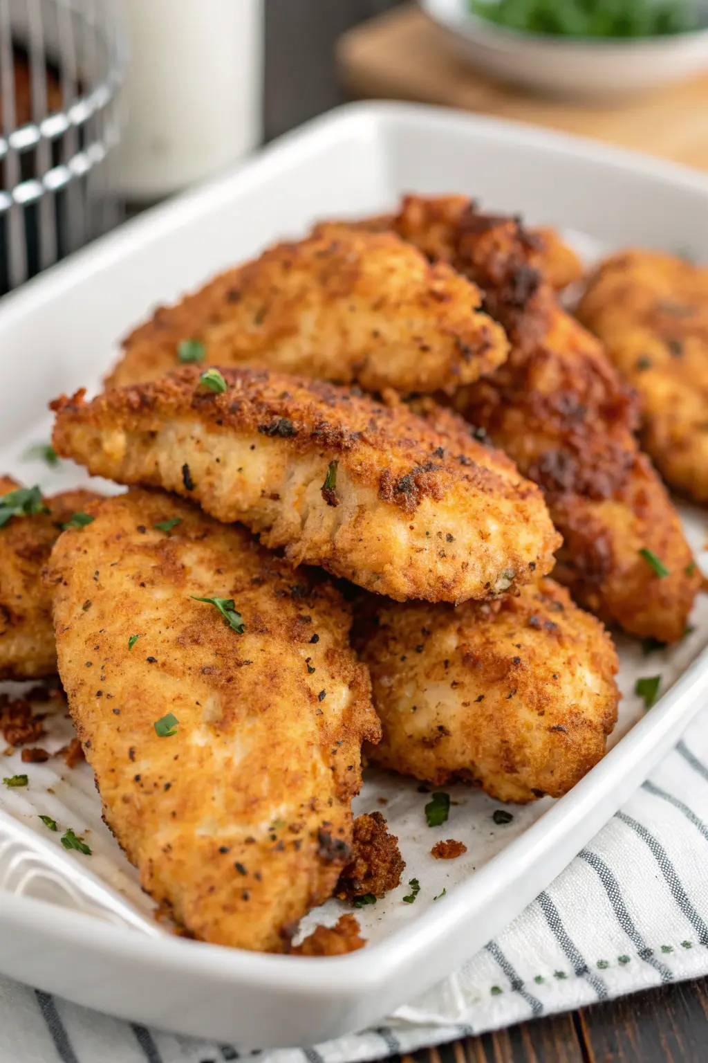 Panko breadcrumbs: Create a light, crispy crust, setting these tenders apart. They absorb less oil than traditional breadcrumbs, making them a healthier option. The unique texture of panko allows it to create pockets of air, resulting in a crispier finish.