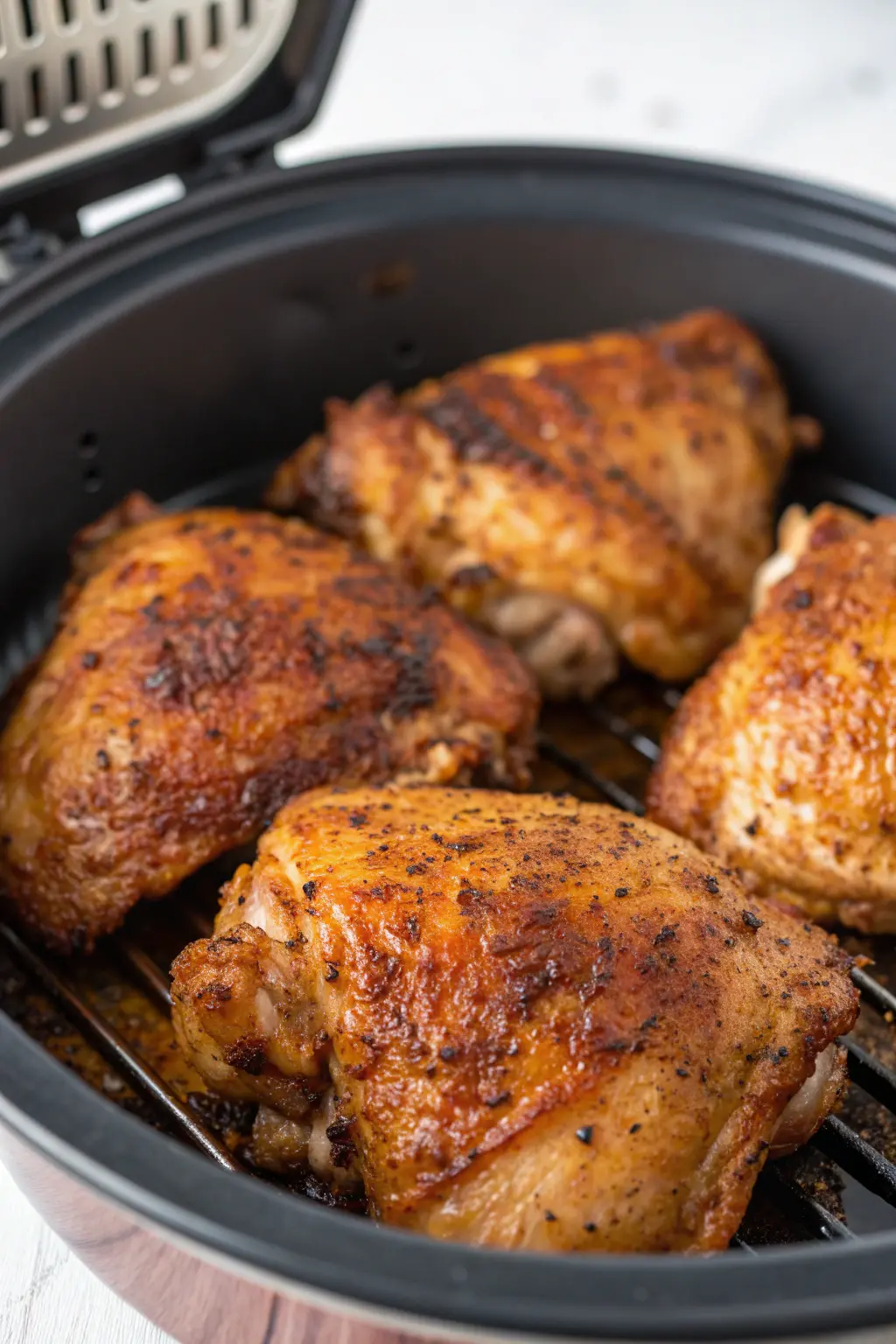 Helpful Tip: For extra crispy skin, spray the chicken thighs lightly with cooking spray before cooking. This additional layer of oil helps the skin reach that perfect crunch.