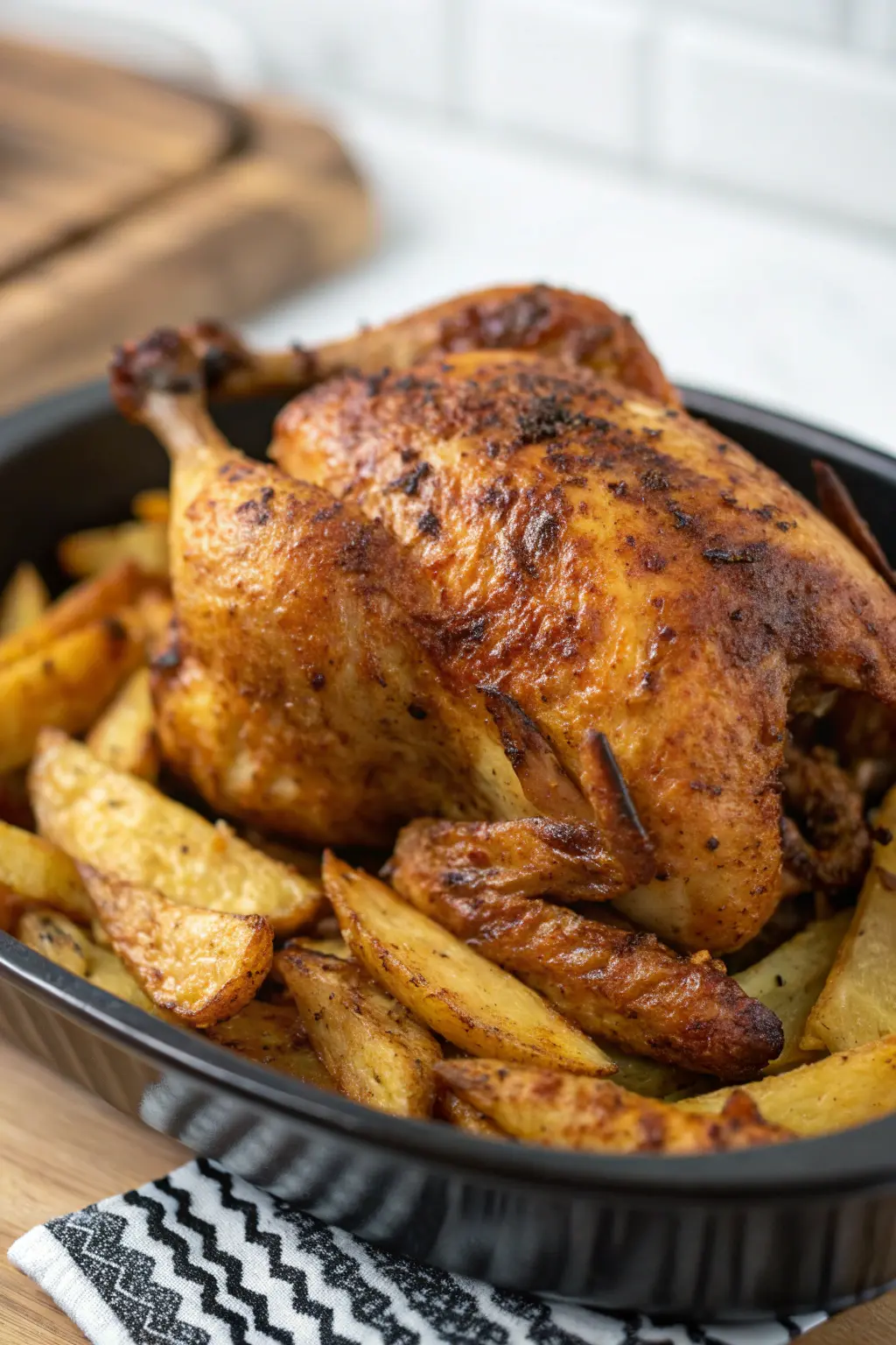 Flavorful and Crispy: The combination of spices and a touch of lemon creates a taste sensation, while the air fryer ensures a crispy skin that’s hard to resist. The air circulation in the fryer means you get an evenly cooked hen with a wonderfully golden exterior. Each bite promises a burst of flavor, as the spice mix seeps into the meat, infusing it with a delightful blend of savory and citrusy notes.