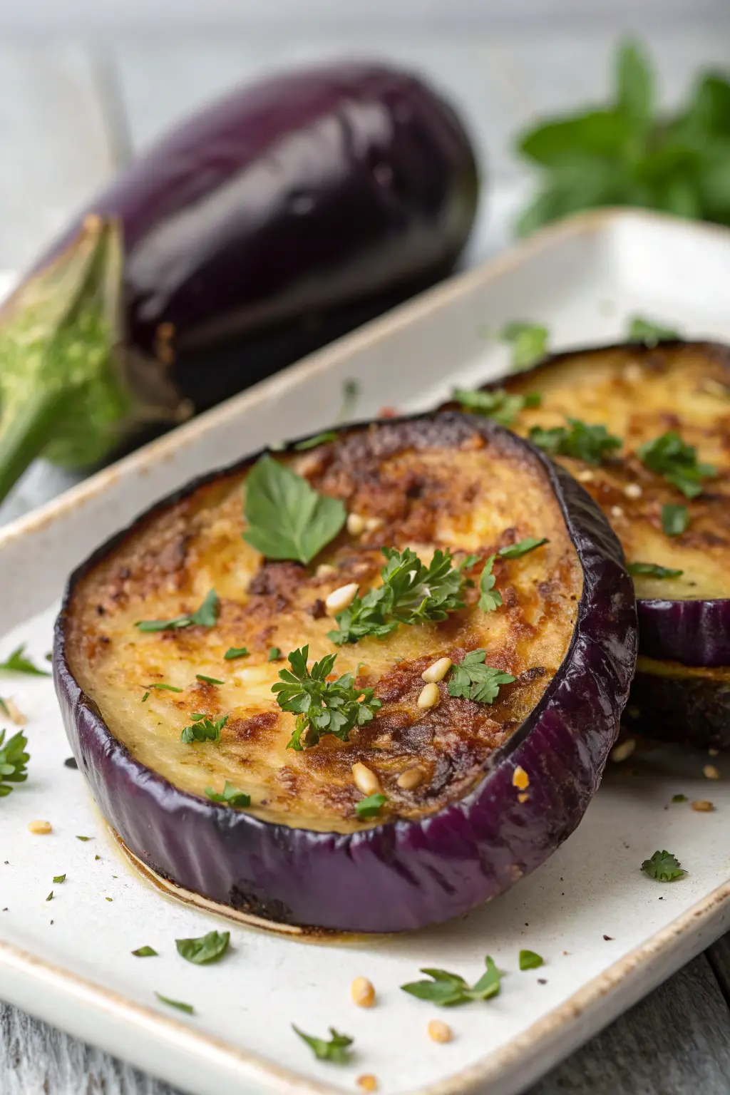 Understanding why each ingredient is used can enhance your cooking experience: – Eggplant: It’s a low-calorie, nutrient-dense vegetable packed with fiber, which helps in digestion and keeps you full longer. Eggplant is also a source of antioxidants, which contribute to overall health and well-being. Its spongy texture allows it to absorb flavors beautifully, making it a versatile ingredient in various cuisines. – Olive Oil: Provides a healthy fat that helps the eggplant crisp up without needing deep frying. Olive oil is rich in monounsaturated fats, which are heart-healthy and add a delicious depth of flavor to the dish. – Garlic and Onion Powders: Add depth and a savory note that enhances the eggplant’s natural flavors. These spices are pantry staples that bring a rich, aromatic quality to the dish, complementing the other ingredients perfectly. – Smoked Paprika: Gives a smoky, slightly spicy kick that elevates the dish from ordinary to extraordinary. Smoked paprika adds a subtle heat and a beautiful color, making the eggplant visually and flavorfully appealing. – Salt and Pepper: Essential for bringing out the flavors of the dish. These basic seasonings are crucial for enhancing the natural taste of the eggplant and the other spices. – Parsley: Adds a fresh, vibrant touch and a pop of color as a garnish. Parsley is not only a decorative element but also provides a mild, fresh flavor that balances the richness of the eggplant.