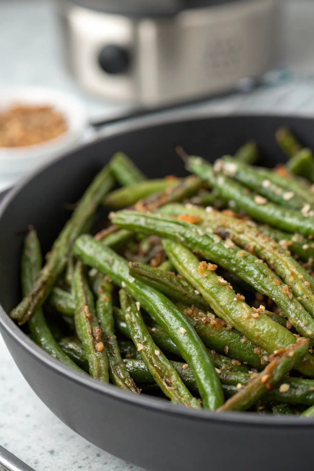 Crisp to Perfection: Cook at 400°F for 8-10 minutes. Remember to shake the basket halfway through to ensure even cooking. The beans should be tender yet slightly crispy. Keep an eye on them in the last few minutes to avoid burning. The aim is to achieve a balance where the beans are cooked through but still have a satisfying crunch.