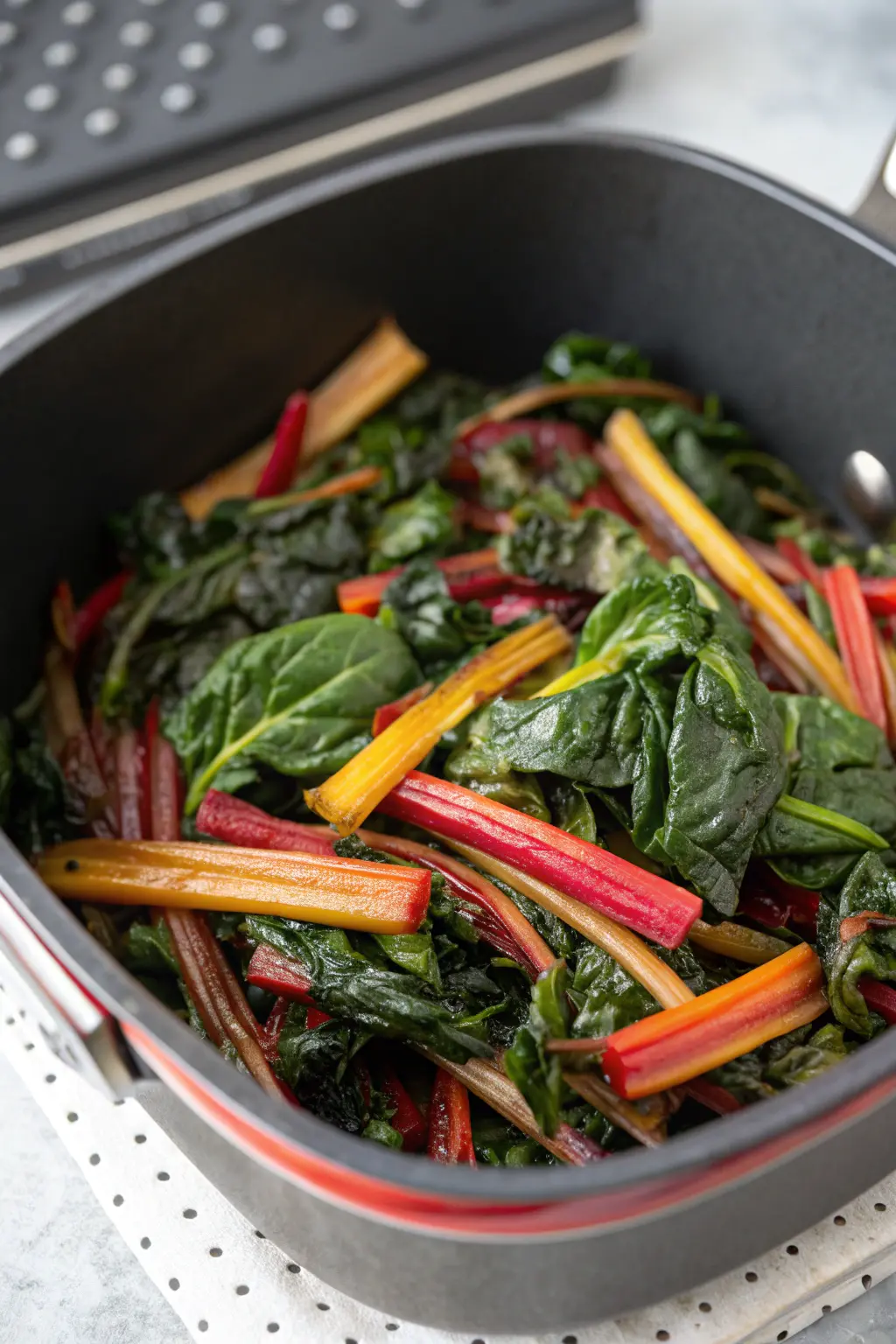 Swiss chard, with its vibrant green leaves and colorful stems, is not just a feast for the eyes but also a powerhouse of nutrients. Its versatility makes it a fantastic ingredient for various dishes, but air frying it allows you to enjoy it at its simplest and most delicious. The air fryer’s magic lies in its ability to give the chard a crispness that’s hard to achieve with traditional cooking methods, all while preserving its inherent nutritional benefits.