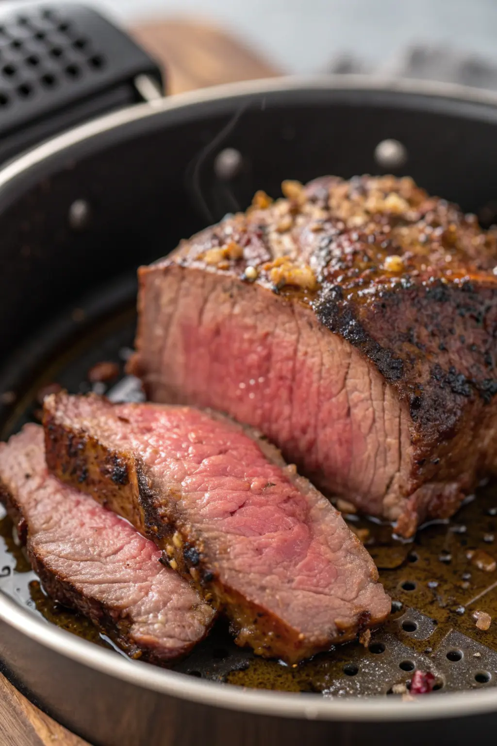 Rest the steaks: Remove from the air fryer and let them rest for 5 minutes before slicing. Resting lets the juices redistribute, ensuring a juicy, tender result. Cutting into the steak too early will lead to a loss of these precious juices.