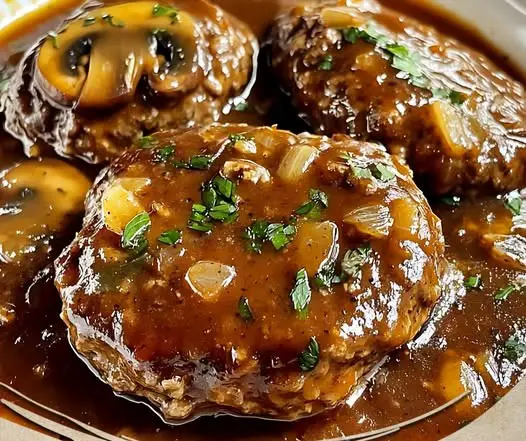 A classic Salisbury Steak recipe, featuring savory beef patties smothered in a rich mushroom gravy. Perfect for a comforting meal.