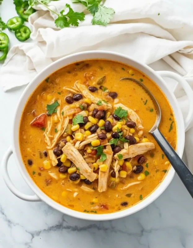Imagine everything you love about chicken enchiladas—the tender chicken, melty cheese, savory sauce, and spices—all spooned into a steaming bowl. It’s slightly spicy, incredibly creamy, and wonderfully filling. Each bite feels like a hug in a bowl, with just the right kick of flavor to keep things exciting!