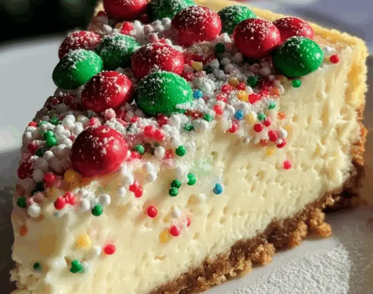 There’s magic in the air—and nothing captures that festive feeling quite like this Christmas Sugar Cookie Cheesecake. It’s rich, creamy, and nostalgic, with all the buttery, vanilla-kissed flavor of your favorite holiday sugar cookies—but in cheesecake form. Topped with whipped cream, crushed cookies, and colorful sprinkles, this dessert is a true showstopper that belongs on every Christmas table.