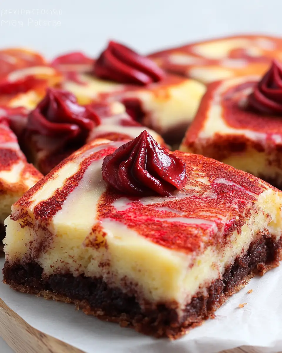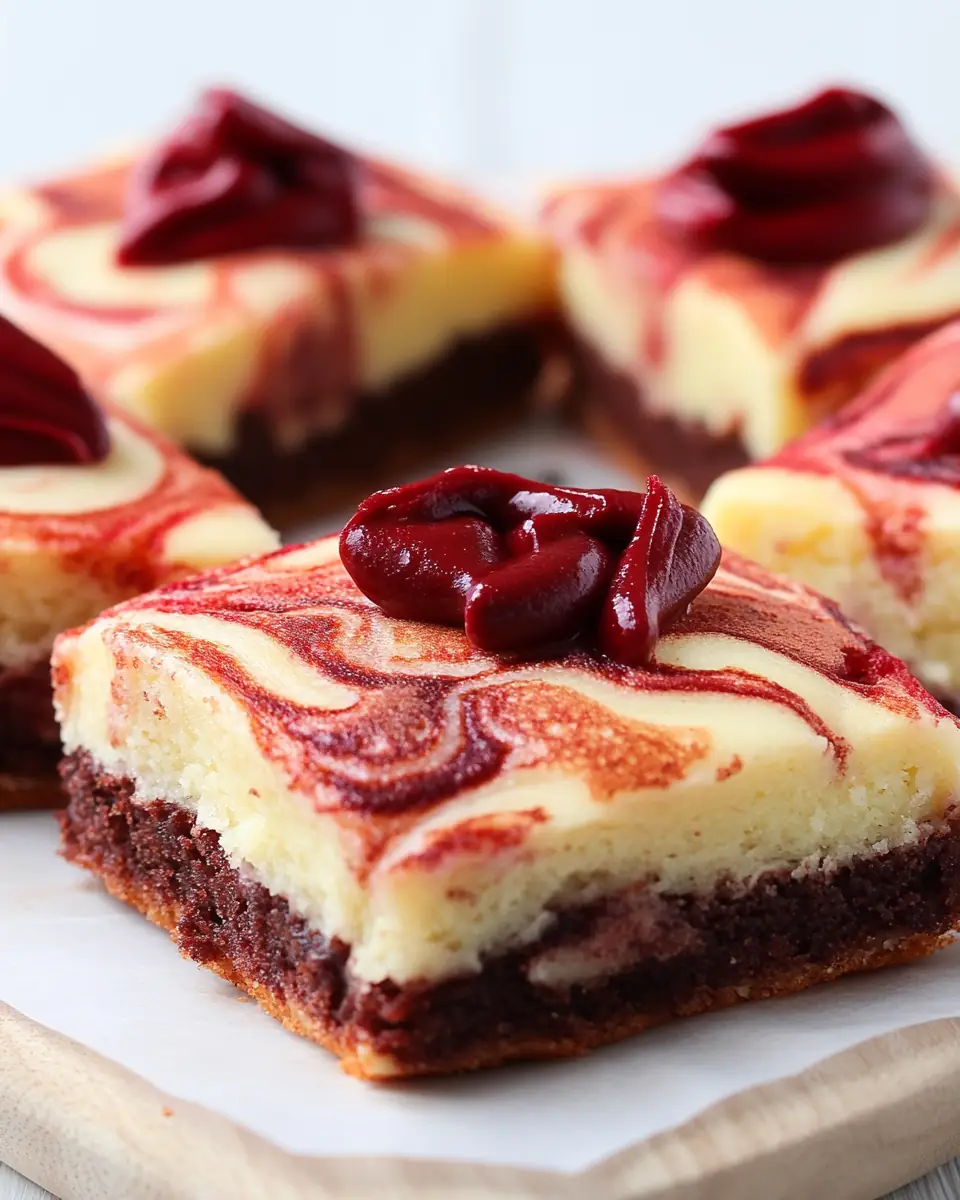 - Using a knife, swirl the cream cheese layer into the brownie batter on top, creating a swirl pattern.