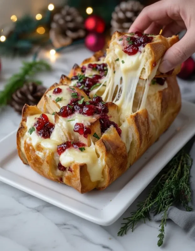 Imagine warm, crusty bread with buttery undertones, creamy melted brie, and bursts of tart cranberry sauce in every pull-apart piece. The contrast of textures — crispy on the outside, soft and gooey inside — is heavenly. The aroma of brie and butter mingling with cranberries? Absolutely intoxicating!