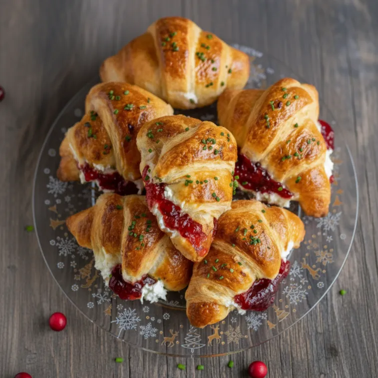 Imagine warm, buttery crescent dough hugging a creamy layer of tangy cream cheese, swirled with ruby-red pepper jelly and little pops of tart cranberries. You get sweetness, gentle heat, creamy richness, and flaky pastry in every bite.