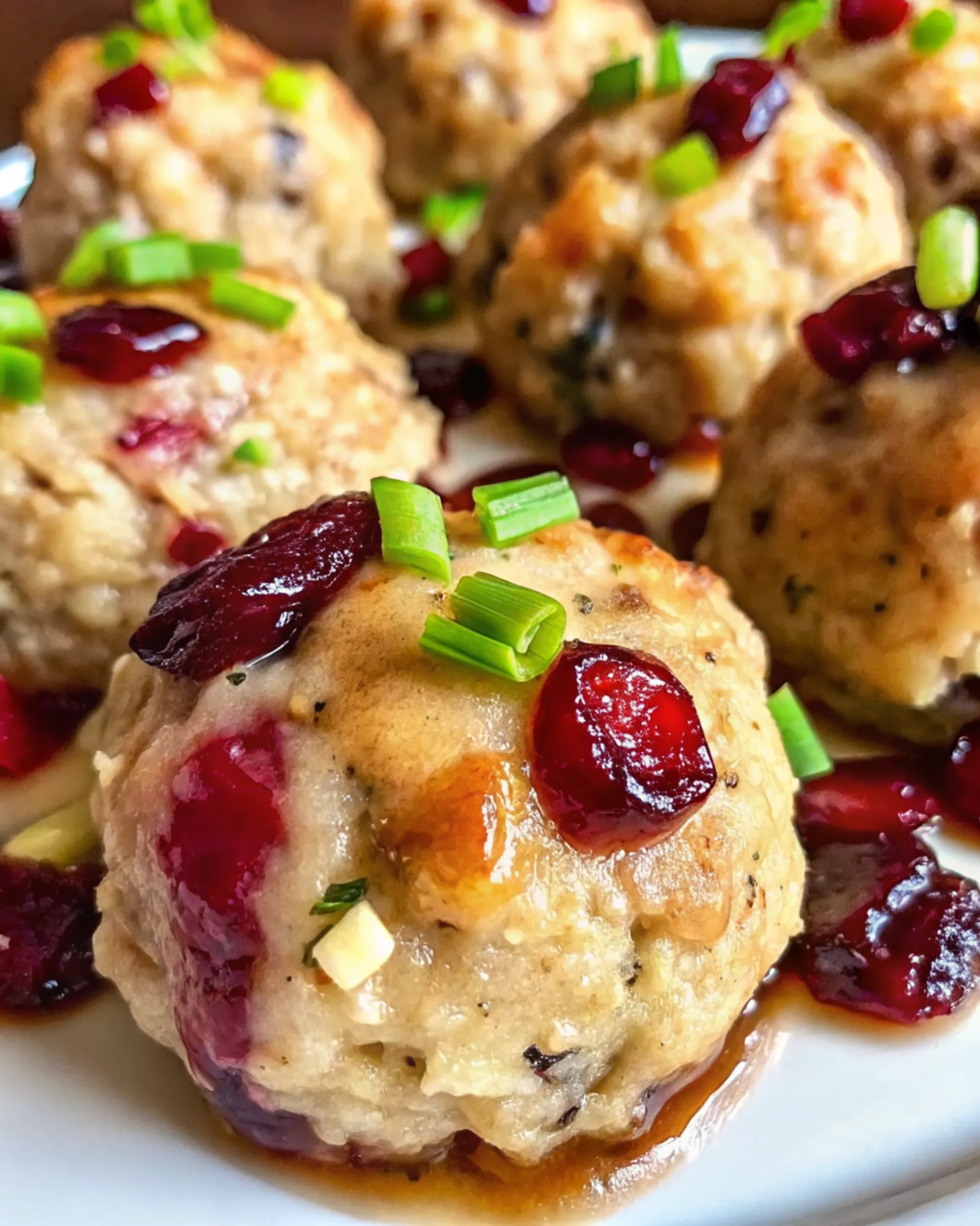 There are recipes you make once a year… and then there are those little treasures that become an instant tradition. These Cranberry Turkey Stuffing Balls are exactly that. Crispy on the outside, tender and savory inside, packed with roasted turkey, tart cranberries, and herb-loaded stuffing—each bite is like Thanksgiving in ball form.