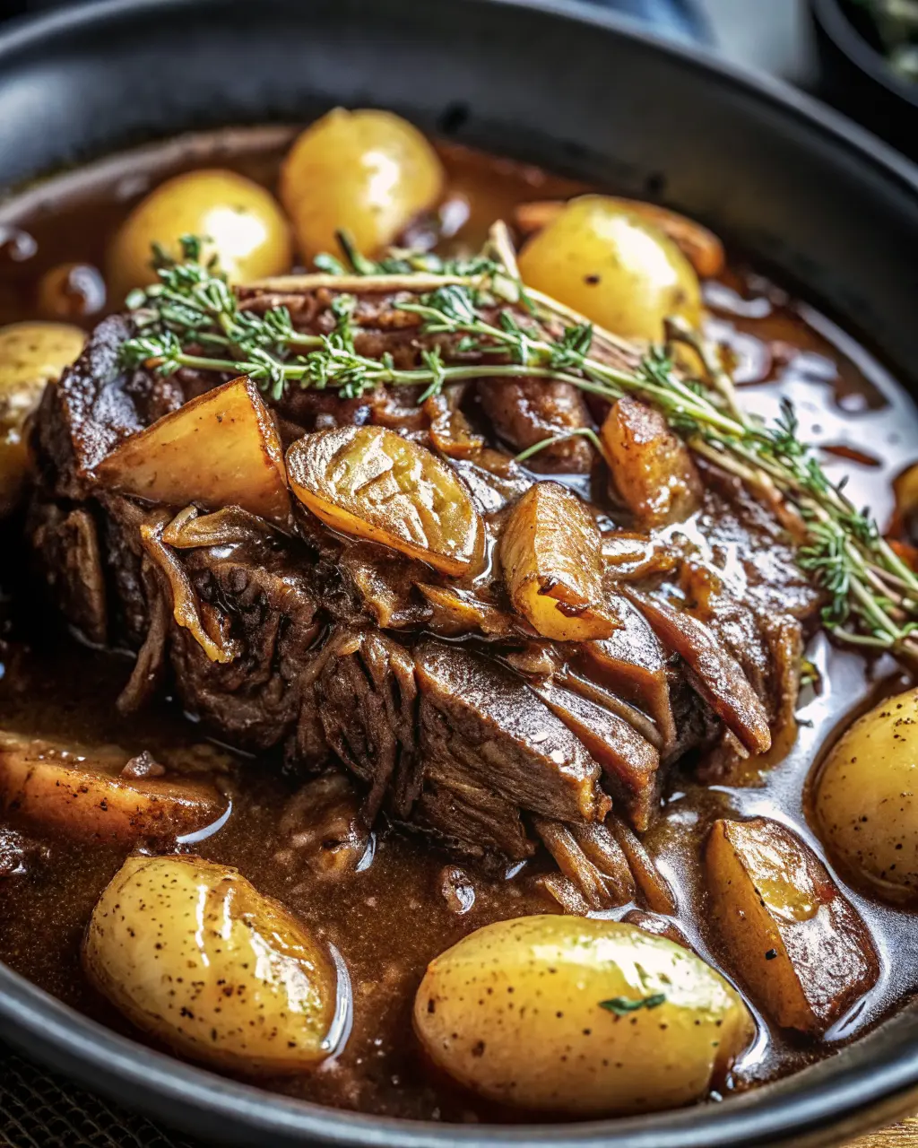 This recipe is my definition of cozy—comfort food at its absolute best. Imagine walking in after a long day, and your kitchen smells like a cross between your favorite Sunday dinner and an autumn apple orchard. That’s the charm of this pot roast.