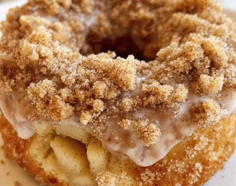 Soft, warmly spiced donuts with real apple flavor, topped with a buttery brown sugar crumb and finished with a cinnamon glaze. Baked, not fried—perfect for fall mornings or cozy treats.