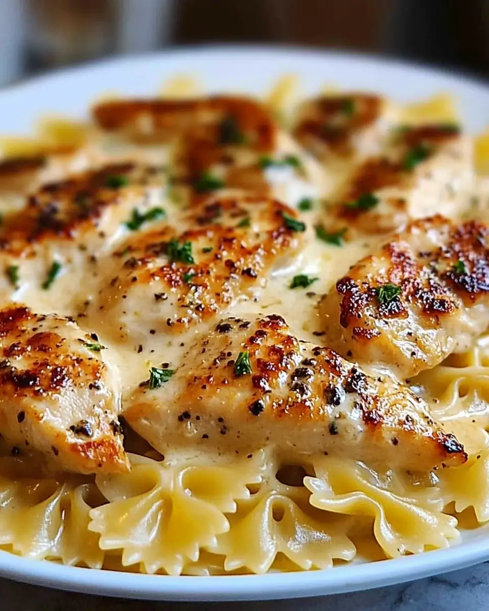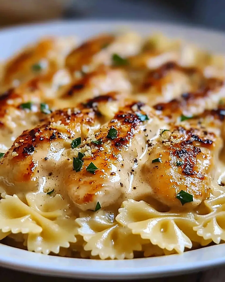 Easy Creamy Lemon Garlic Chicken with Parmesan Bowtie Pasta