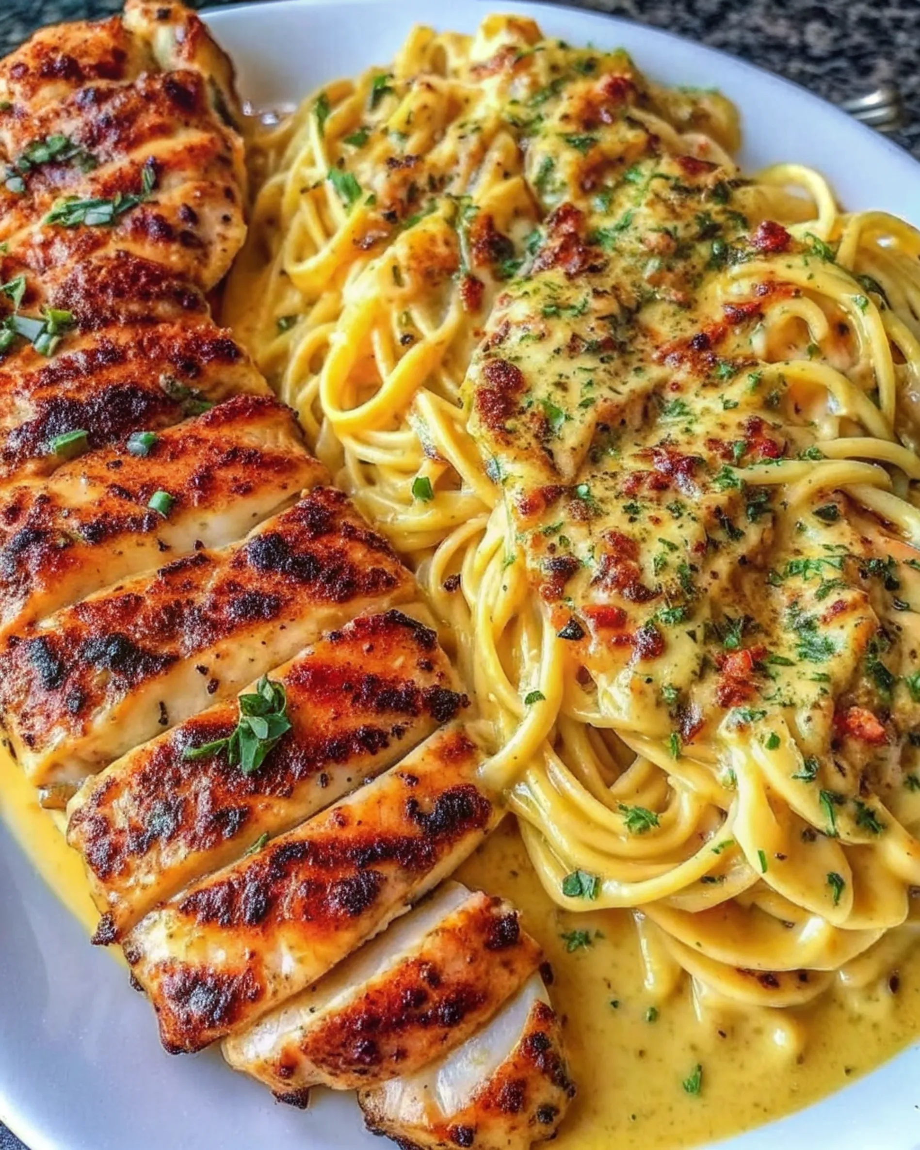 - Finish & Serve: Add sliced chicken on top or stir in. Garnish with parsley or green onions and extra parmesan if desired. Serve hot.