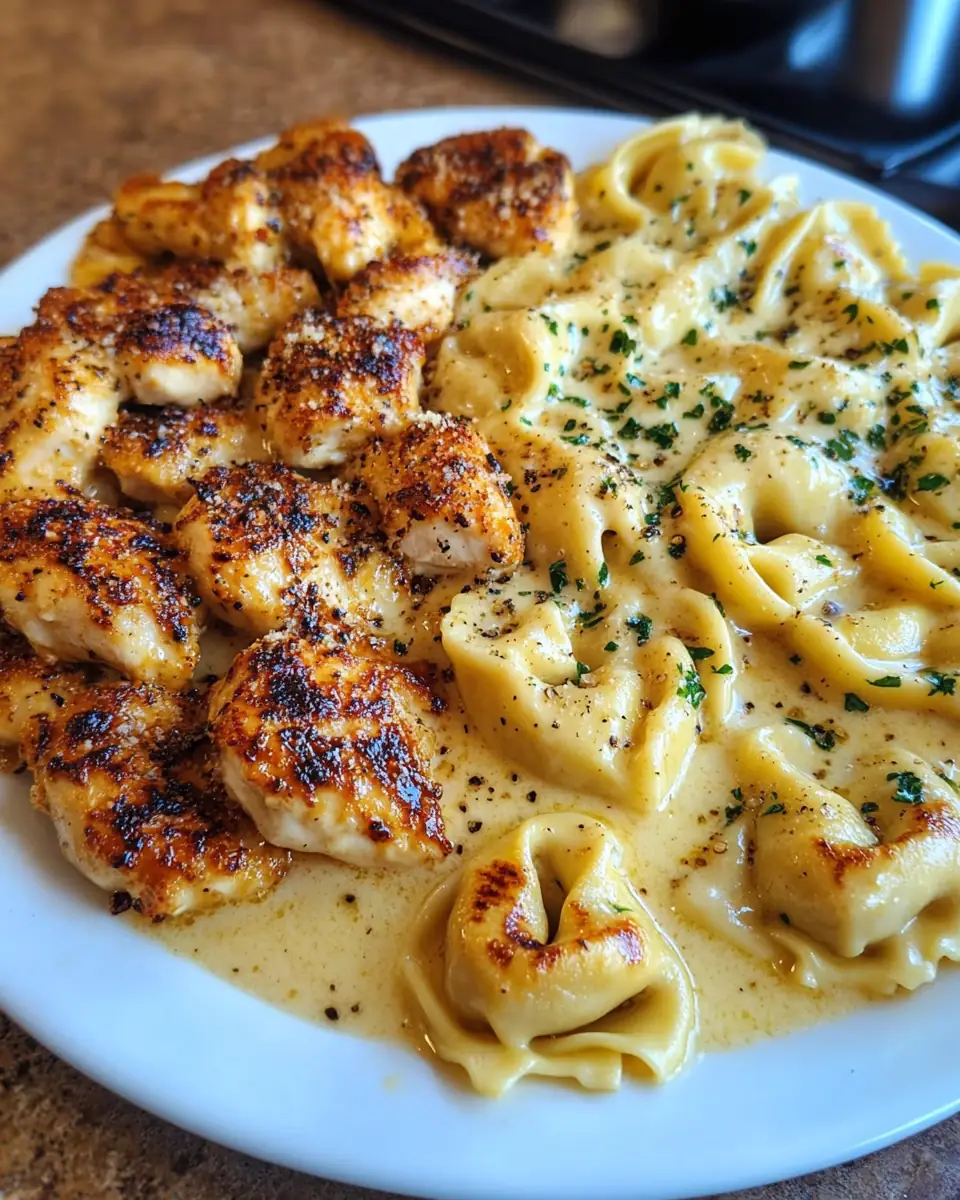 Garlic Parmesan Chicken Tortellini in Creamy Velveeta Asiago Sauce