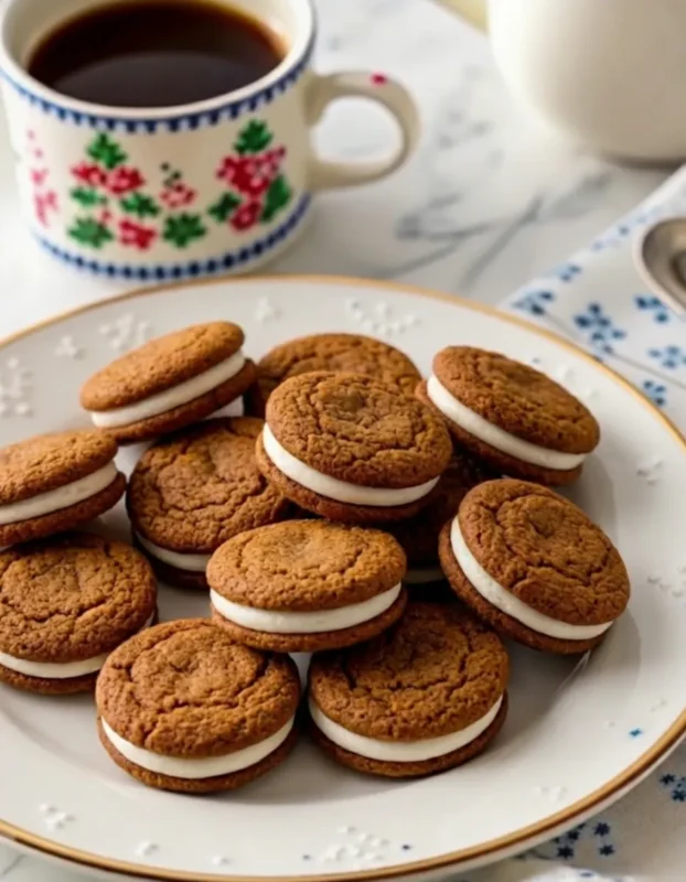 What makes these special is the perfect balance of flavors. The gingerbread cookies are soft and chewy with just the right amount of spice, while the cream cheese frosting adds a tangy sweetness that cuts through the richness. They’re festive enough for holiday parties but simple enough to make any weekend. Plus, they’re easier than traditional whoopie pies because the cookies are rolled in sugar and don’t require piping.