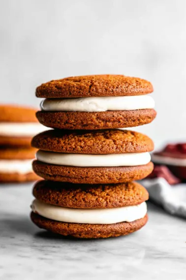 What makes these special is the perfect balance of flavors. The gingerbread cookies are soft and chewy with just the right amount of spice, while the cream cheese frosting adds a tangy sweetness that cuts through the richness. They’re festive enough for holiday parties but simple enough to make any weekend. Plus, they’re easier than traditional whoopie pies because the cookies are rolled in sugar and don’t require piping.