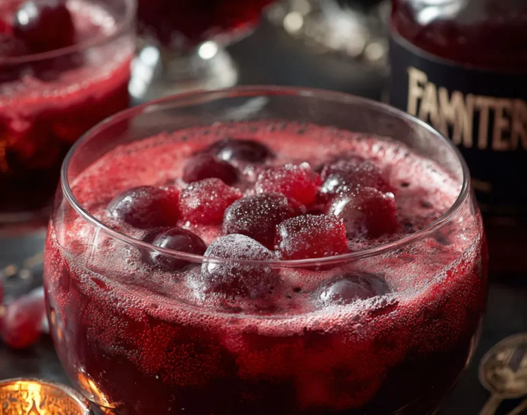 This punch is a bright red, kid-friendly Halloween drink made with a mix of fruit juices and soda, topped with creepy garnishes like floating “eyeballs,” fake vampire teeth, or even dry ice fog (for that full mad-scientist effect!). It’s sweet, fruity, and slightly fizzy—basically the drink equivalent of Halloween candy in a cup.