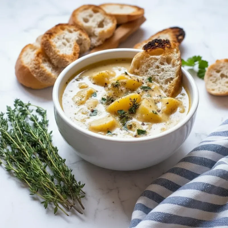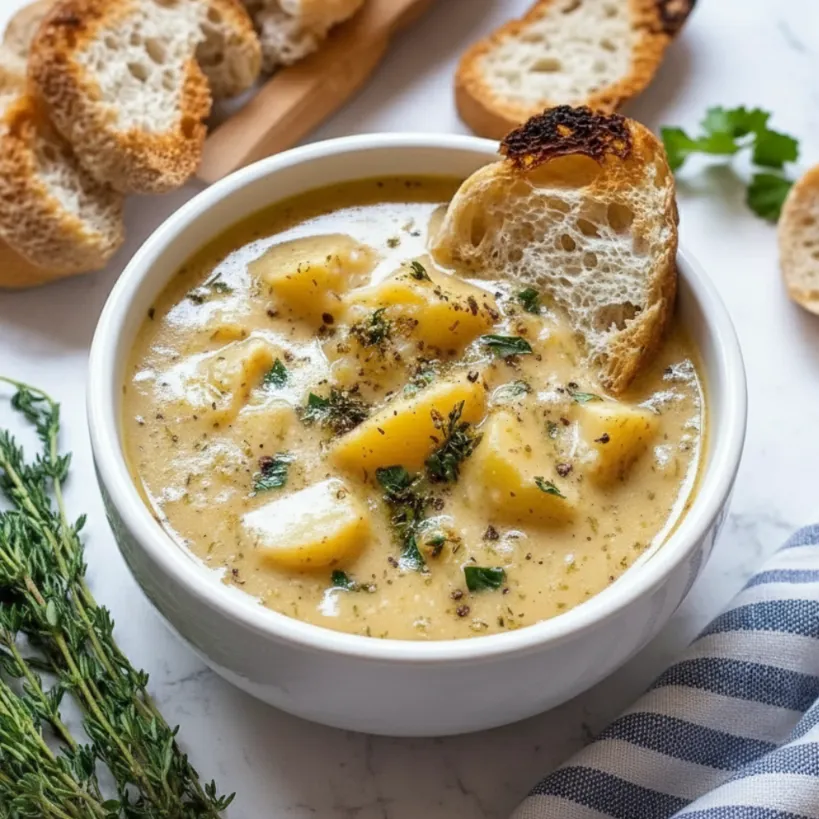 Imagine tender chunks of potato swimming in a velvety broth infused with roasted garlic and fresh herbs, all blanketed in sharp cheddar. The flavor is deep, savory, and perfectly balanced — a little buttery, a little garlicky, and a lot delicious. It’s everything comfort food should be.