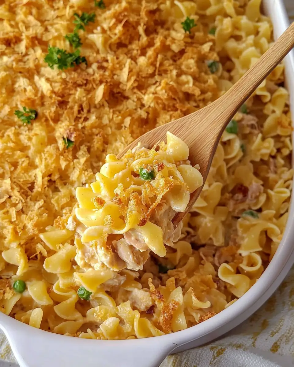 A comforting and classic casserole that combines tender noodles, creamy tuna mixture, and a crispy topping.