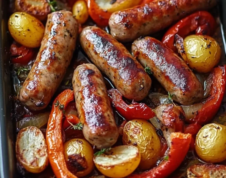 A hearty and flavorful sheet pan dinner featuring juicy sausages, tender potatoes, and roasted peppers and onions. Perfect for busy weeknights with minimal cleanup!