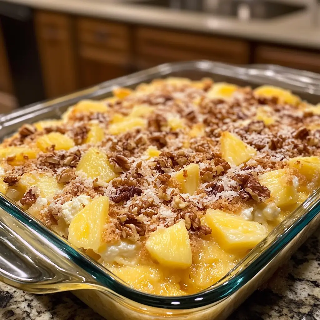 In conclusion, the Pineapple Cream Cheese Dump Cake is a testament to the beauty of uncomplicated, heartfelt cooking. It’s a recipe that transcends time and trends, offering a slice of comfort and nostalgia with every bite. Whether you’re a seasoned baker or a newcomer to the kitchen, this cake invites you to slow down, savor the moment, and connect with those you love. So gather your ingredients, invite your family into the kitchen, and enjoy the journey of creating something truly special together. Happy baking!