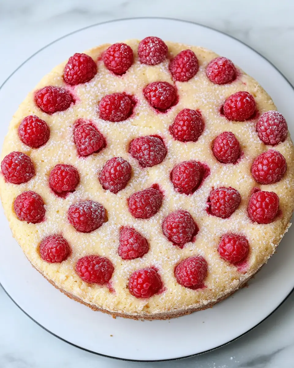 Assemble the Cake: Pour the batter into the prepared cake pan and smooth the top with a spatula. Scatter the raspberries over the top of the batter, then sprinkle with the remaining 1 1/2 tablespoons of sugar. The sugar on top caramelizes slightly during baking, adding a delicate crunch.