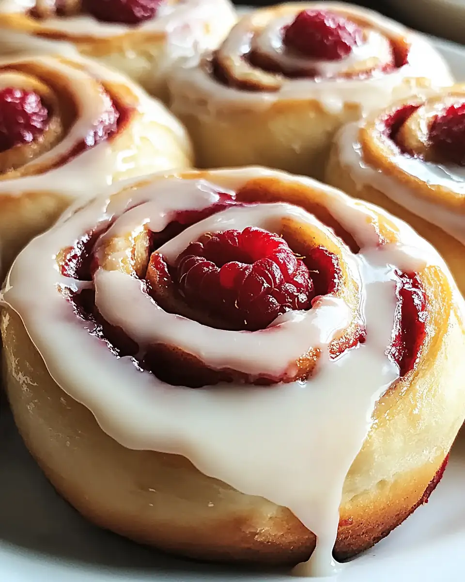 Delicious raspberry cinnamon rolls topped with a tangy lemon glaze, perfect for breakfast or dessert!
