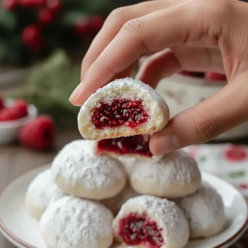 These Raspberry-Filled Almond Snow Cookies are the perfect combination of elegance and comfort. With buttery almond shortbread and tangy-sweet raspberry jam, each bite melts in your mouth and leaves behind a dusting of holiday joy. They’re beautiful on any Christmas cookie platter, delightful as gifts, and guaranteed to impress every guest at your holiday table.