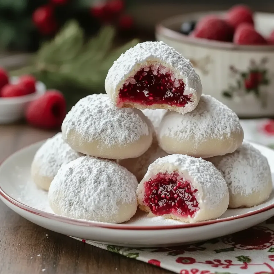These Raspberry-Filled Almond Snow Cookies are the perfect combination of elegance and comfort. With buttery almond shortbread and tangy-sweet raspberry jam, each bite melts in your mouth and leaves behind a dusting of holiday joy. They’re beautiful on any Christmas cookie platter, delightful as gifts, and guaranteed to impress every guest at your holiday table.