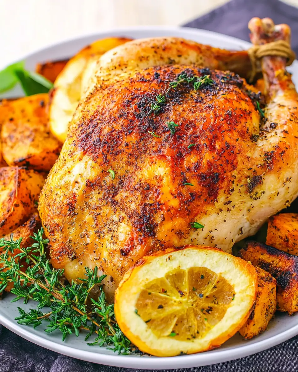 The combination of olive oil, paprika, garlic powder, and herbs ensures that every bite is bursting with flavor. The lemon slices tucked under the chicken add a subtle citrus note, keeping the meat moist and tender. This perfect harmony of flavors makes each bite an experience to savor.