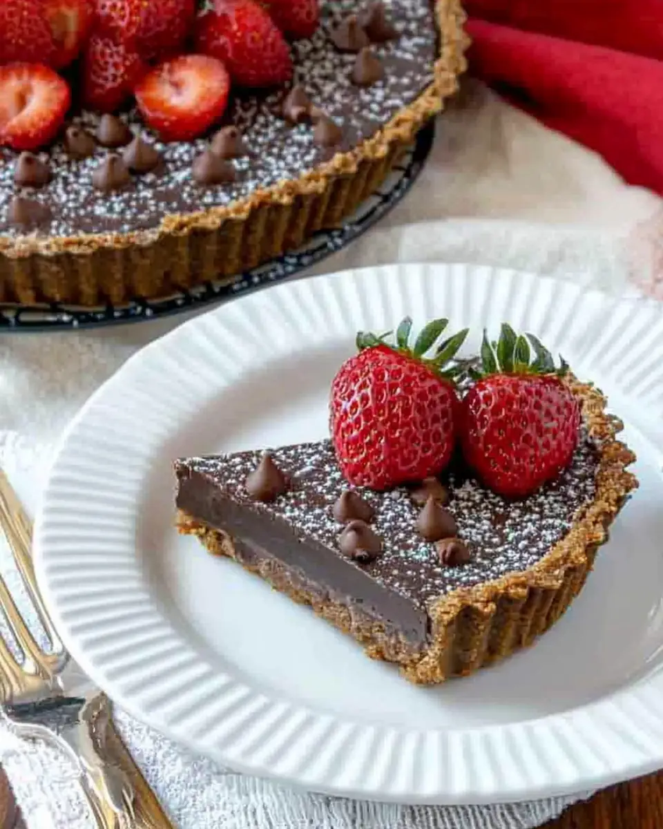 Strawberries: The vibrant jewel atop the tart, strawberries provide a burst of color and natural sweetness. They pair beautifully with chocolate and offer a refreshing contrast to the richness of the filling. Strawberries are high in vitamin C and antioxidants, adding a nutritious element to the indulgence. Their bright red hue not only enhances the visual appeal but also signifies freshness and vitality.