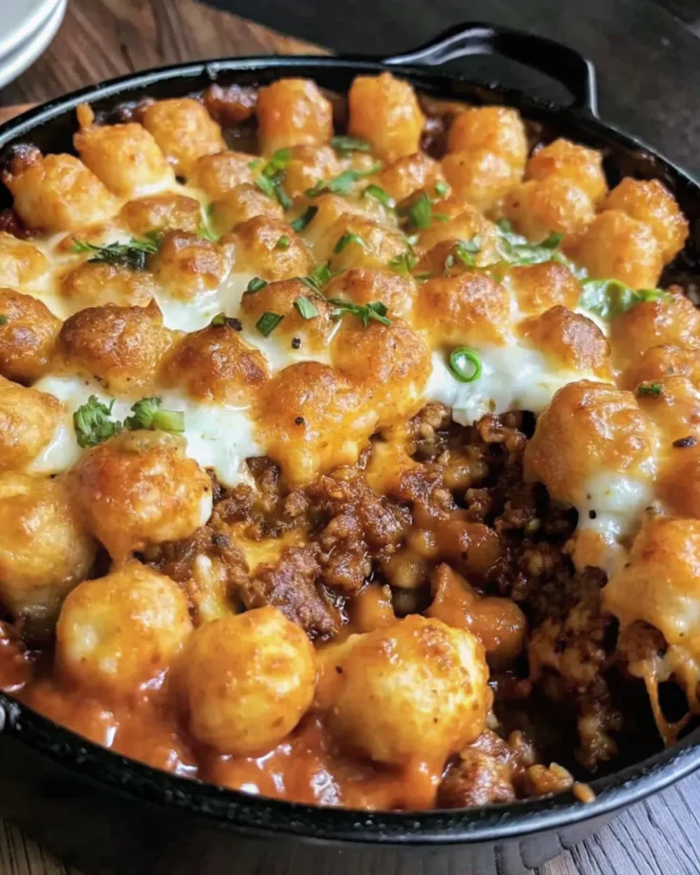 This Sloppy Joe Tater Tot Casserole combines all the saucy, tangy flavor of classic Sloppy Joes with the crisp, golden magic of baked tater tots and melty cheese. Cozy, nostalgic, and weeknight-approved comfort food for the whole family.