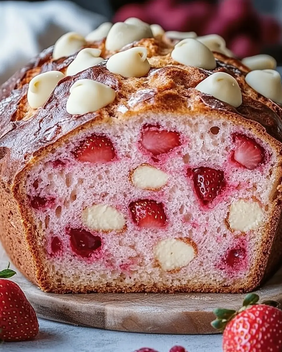 Cool and Serve: Let the bread cool completely on a wire rack before slicing to enjoy the beautiful pink interior and sweet bursts of white chocolate.