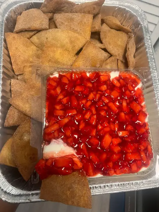 Keywords: strawberry, cheesecake, nachos, party snack, dessert dip