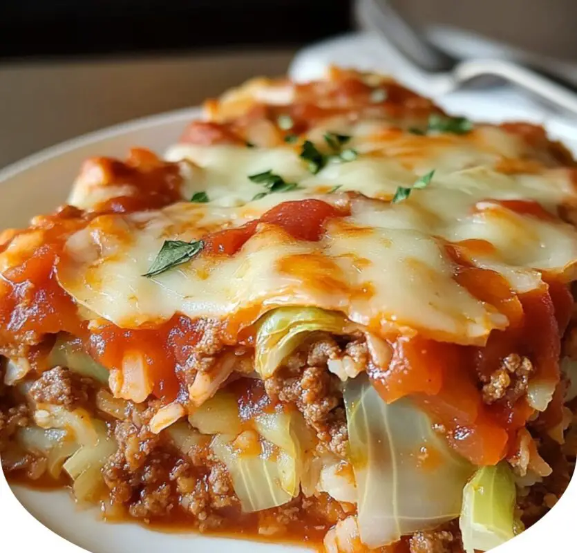 A hearty and comforting casserole that combines all the flavors of traditional stuffed cabbage rolls without the fuss of rolling. Made with ground beef (or turkey), cabbage, rice, and a savory tomato sauce, topped with melted mozzarella cheese.