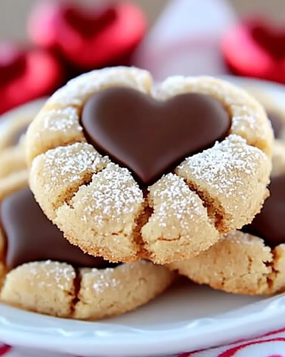 These delightful Valentine Crinkle Cookies are perfect for sharing love on any occasion. Soft and chewy with a chocolate heart surprise in the center.