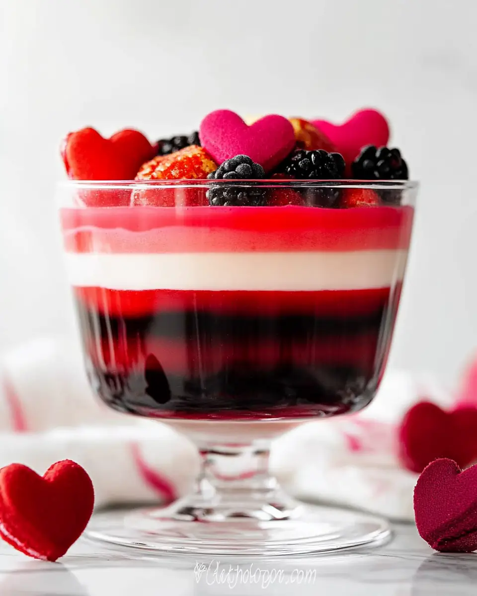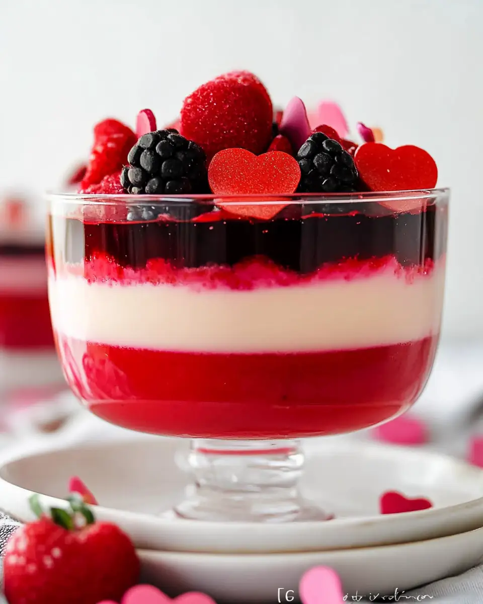 The Valentine Layered Jello is a versatile dessert that pairs well with a variety of meals. For a full Valentine’s dinner, consider serving it after a comforting main course like my Easy Chicken Alfredo or Classic Meatloaf, both available on mateorecipes.blog. These hearty dishes provide a perfect balance to the light, sweet finish of the jello.