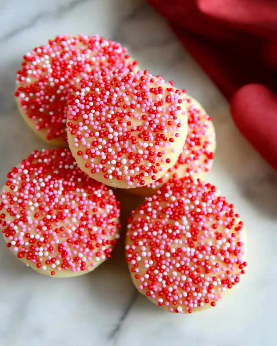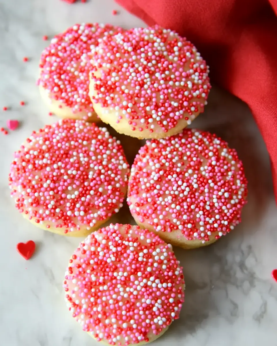 • Customizable: While they’re ideal for Valentine’s Day, you can swap out the sprinkles for different occasions, such as using pastel colors for Easter or red and green for Christmas. This versatility makes the recipe a staple for any celebration.