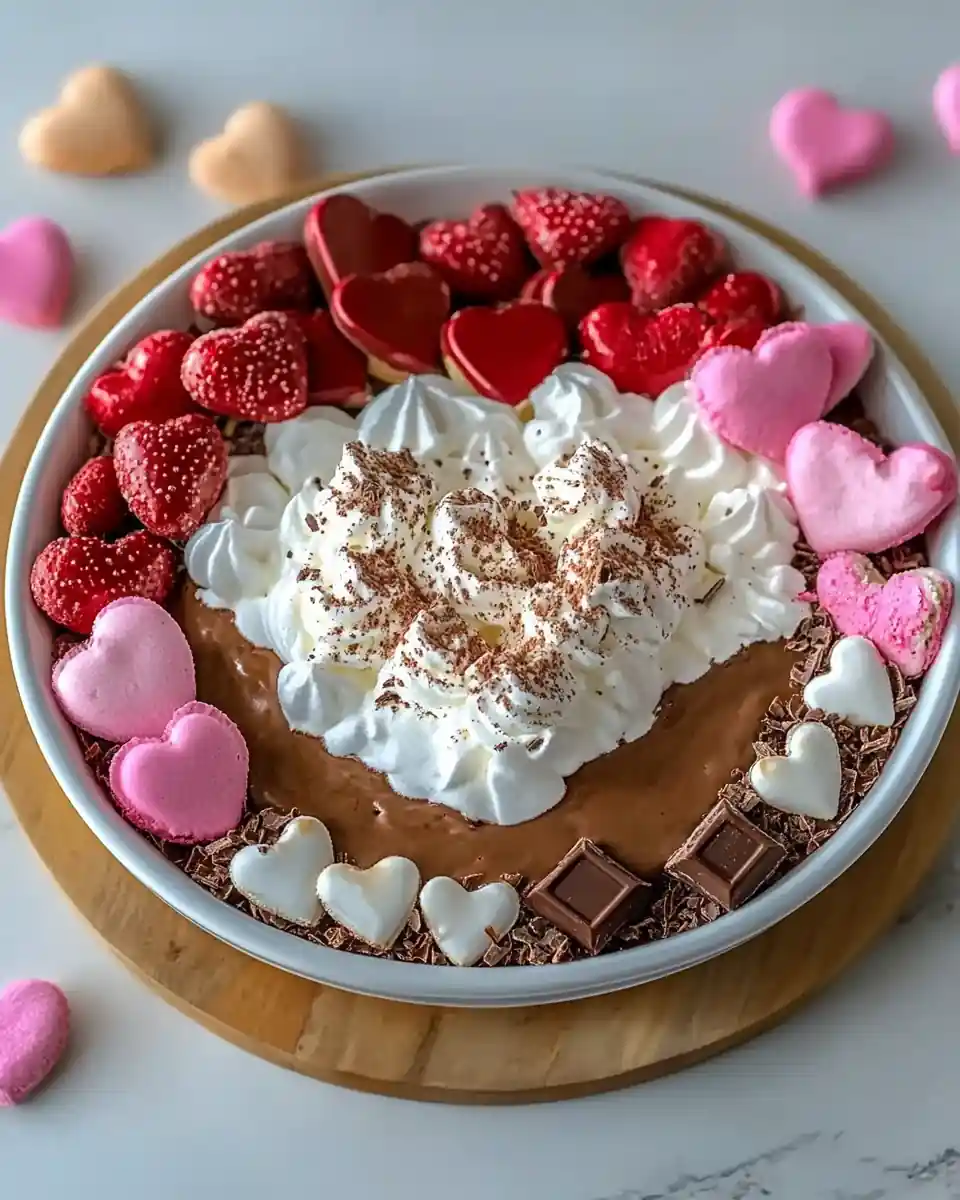 - Before serving, top with whipped cream, mini marshmallows, heart-shaped sprinkles, and a drizzle of melted chocolate.